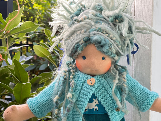 Made with natural fibres, each Little Friend has  hand-dyed hair yarn, a cotton knit “skin,” and is stuffed with West Coast wool for that comforting, natural weight children love. We’re happy to personalize your doll with freckles, a messy buns, or even a name change, just let us know!