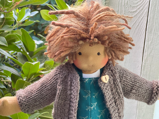Made with natural fibres, each Little Friend has  hand-dyed hair yarn, a cotton knit “skin,” and is stuffed with West Coast wool for that comforting, natural weight children love. We’re happy to personalize your doll with freckles, a messy buns, or even a name change, just let us know!
