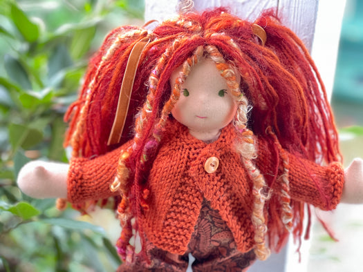Made with natural fibres, each Little Friend has  hand-dyed hair yarn, a cotton knit “skin,” and is stuffed with West Coast wool for that comforting, natural weight children love. We’re happy to personalize your doll with freckles, a messy buns, or even a name change, just let us know!