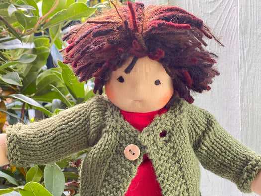 Made with natural fibres, each Little Friend has  hand-dyed hair yarn, a cotton knit “skin,” and is stuffed with West Coast wool for that comforting, natural weight children love. We’re happy to personalize your doll with freckles, a messy buns, or even a name change, just let us know!