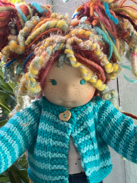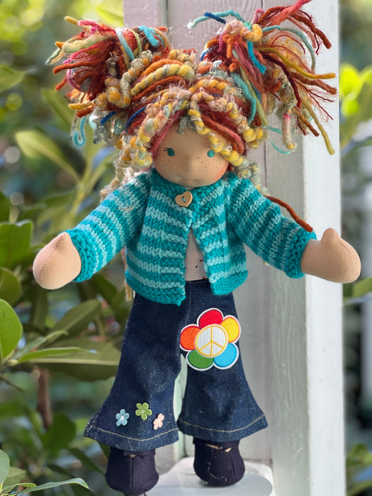Made with natural fibres, each Little Friend has  hand-dyed hair yarn, a cotton knit “skin,” and is stuffed with West Coast wool for that comforting, natural weight children love. We’re happy to personalize your doll with freckles, a messy buns, or even a name change, just let us know!