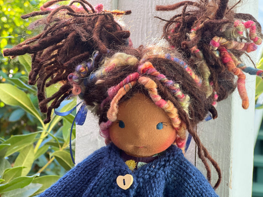 Made with natural fibres, each Little Friend has  hand-dyed hair yarn, a cotton knit “skin,” and is stuffed with West Coast wool for that comforting, natural weight children love. We’re happy to personalize your doll with freckles, a messy buns, or even a name change, just let us know!