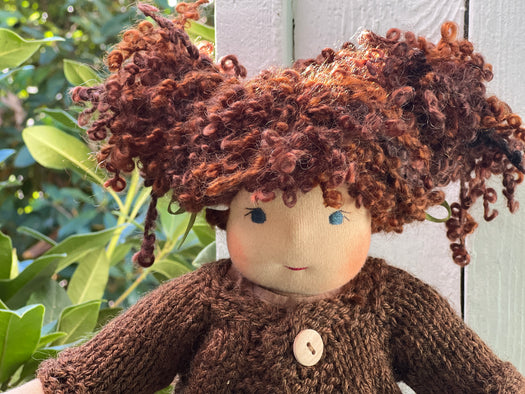 Made with natural fibres, each Little Friend has  hand-dyed hair yarn, a cotton knit “skin,” and is stuffed with West Coast wool for that comforting, natural weight children love. We’re happy to personalize your doll with freckles, a messy buns, or even a name change, just let us know!