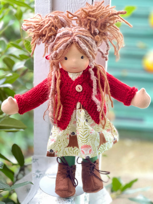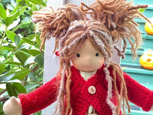 Made with natural fibres, each Little Friend has  hand-dyed hair yarn, a cotton knit “skin,” and is stuffed with West Coast wool for that comforting, natural weight children love. We’re happy to personalize your doll with freckles, a messy buns, or even a name change, just let us know!