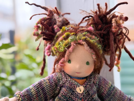 Made with natural fibres, each Little Friend has  hand-dyed hair yarn, a cotton knit “skin,” and is stuffed with West Coast wool for that comforting, natural weight children love. We’re happy to personalize your doll with freckles, a messy buns, or even a name change, just let us know!
