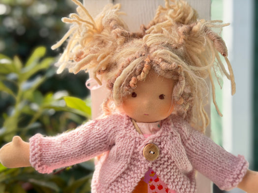 Made with natural fibres, each Little Friend has  hand-dyed hair yarn, a cotton knit “skin,” and is stuffed with West Coast wool for that comforting, natural weight children love. We’re happy to personalize your doll with freckles, a messy buns, or even a name change, just let us know!
