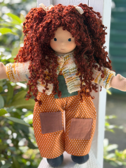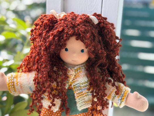 Made with natural fibres, each Little Friend has  hand-dyed hair yarn, a cotton knit “skin,” and is stuffed with West Coast wool for that comforting, natural weight children love. We’re happy to personalize your doll with freckles, a messy buns, or even a name change, just let us know!
