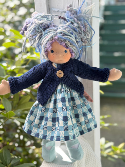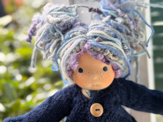 Made with natural fibres, each Little Friend has  hand-dyed hair yarn, a cotton knit “skin,” and is stuffed with West Coast wool for that comforting, natural weight children love. We’re happy to personalize your doll with freckles, a messy buns, or even a name change, just let us know!