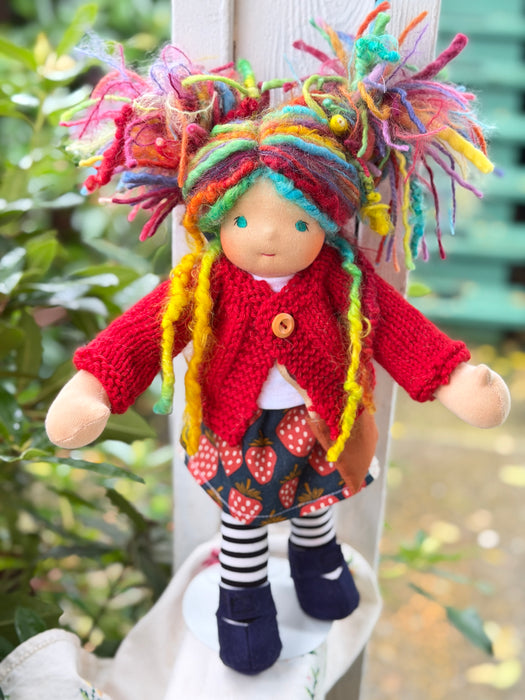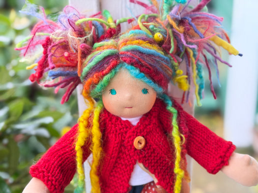 Made with natural fibres, each Little Friend has  hand-dyed hair yarn, a cotton knit “skin,” and is stuffed with West Coast wool for that comforting, natural weight children love. We’re happy to personalize your doll with freckles, a messy buns, or even a name change, just let us know!
