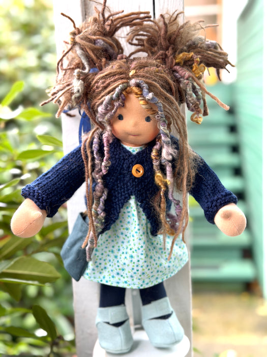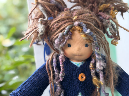 Made with natural fibres, each Little Friend has  hand-dyed hair yarn, a cotton knit “skin,” and is stuffed with West Coast wool for that comforting, natural weight children love. We’re happy to personalize your doll with freckles, a messy buns, or even a name change, just let us know!