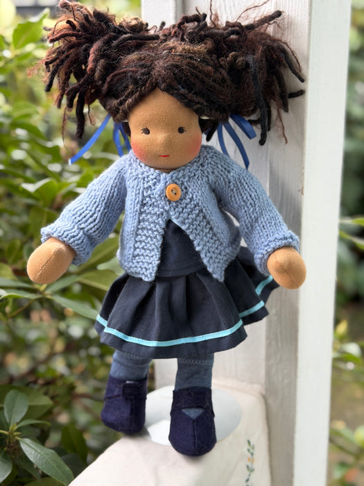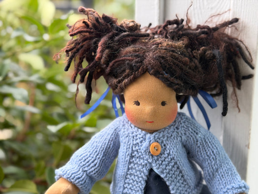 Made with natural fibres, each Little Friend has  hand-dyed hair yarn, a cotton knit “skin,” and is stuffed with West Coast wool for that comforting, natural weight children love. We’re happy to personalize your doll with freckles, a messy buns, or even a name change, just let us know!