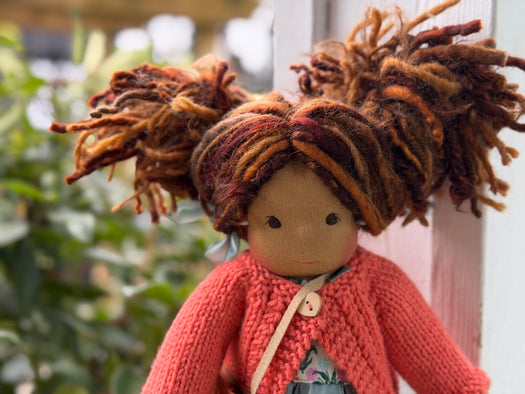 Made with natural fibres, each Little Friend has  hand-dyed hair yarn, a cotton knit “skin,” and is stuffed with West Coast wool for that comforting, natural weight children love. We’re happy to personalize your doll with freckles, a messy buns, or even a name change, just let us know!
