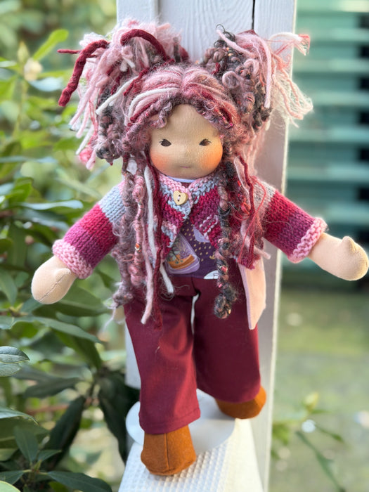 Made with natural fibres, each Little Friend has  hand-dyed hair yarn, a cotton knit “skin,” and is stuffed with West Coast wool for that comforting, natural weight children love. We’re happy to personalize your doll with freckles, a messy buns, or even a name change, just let us know!