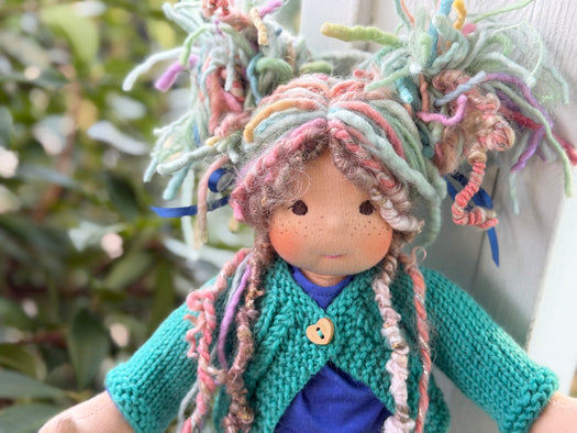Made with natural fibres, each Little Friend has  hand-dyed hair yarn, a cotton knit “skin,” and is stuffed with West Coast wool for that comforting, natural weight children love. We’re happy to personalize your doll with freckles, a messy buns, or even a name change, just let us know!