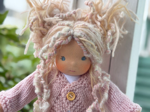 Made with natural fibres, each Little Friend has  hand-dyed hair yarn, a cotton knit “skin,” and is stuffed with West Coast wool for that comforting, natural weight children love. We’re happy to personalize your doll with freckles, a messy buns, or even a name change, just let us know!