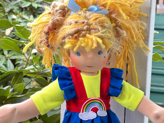 Made with natural fibres, each Little Friend has  hand-dyed hair yarn, a cotton knit “skin,” and is stuffed with West Coast wool for that comforting, natural weight children love. We’re happy to personalize your doll with freckles, a messy buns, or even a name change, just let us know!
