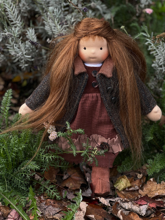 What makes Ashton especially magical is her hair: instead of our traditional yarn, each doll’s mohair is sewn in as a weft— giving it a soft, realistic texture that can be gently styled and cared for like real hair.
