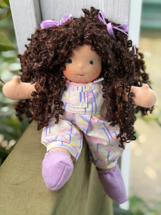 What is this little bundle of sweetness? A Piccolina! Our smallest heirloom doll, measuring about 9" of pure cuteness. Though tiny, Piccolinas are made with the same natural materials and love as our larger dolls — cotton knit, Canadian wool, and all the heart our team can stitch in.
