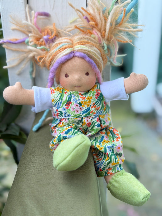 What is this little bundle of sweetness? A Piccolina! Our smallest heirloom doll, measuring about 9" of pure cuteness. Though tiny, Piccolinas are made with the same natural materials and love as our larger dolls — cotton knit, Canadian wool, and all the heart our team can stitch in.