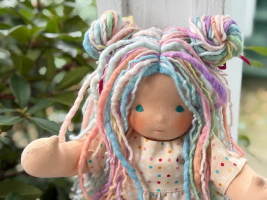 Every Sitting Doll is a one-of-a-kind heirloom treasure, lovingly handmade by our Bamboletta team here on the West Coast of Canada. Price variations reflect differences in hair type, clothing, and sweaters.