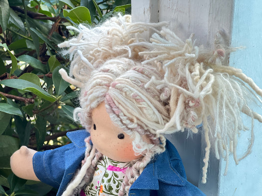 Every Sitting Doll is a one-of-a-kind heirloom treasure, lovingly handmade by our Bamboletta team here on the West Coast of Canada. Price variations reflect differences in hair type, clothing, and sweaters.